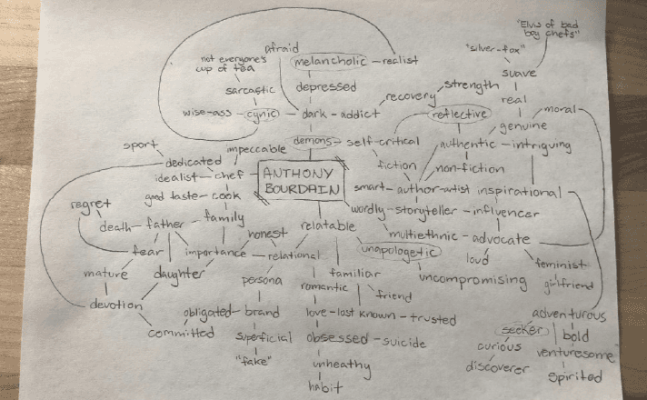 The mind map was used as an exploratory tool to organize early research, thematic concepts, and design directions. Centered around Anthony Bourdain’s legacy, the map branches out into personal influences, cultural touchpoints, emotional triggers, and potential sensory experiences. This helped clarify the exhibition’s narrative arc and identify opportunities to weave in visual metaphors, audience engagement, and storytelling moments.