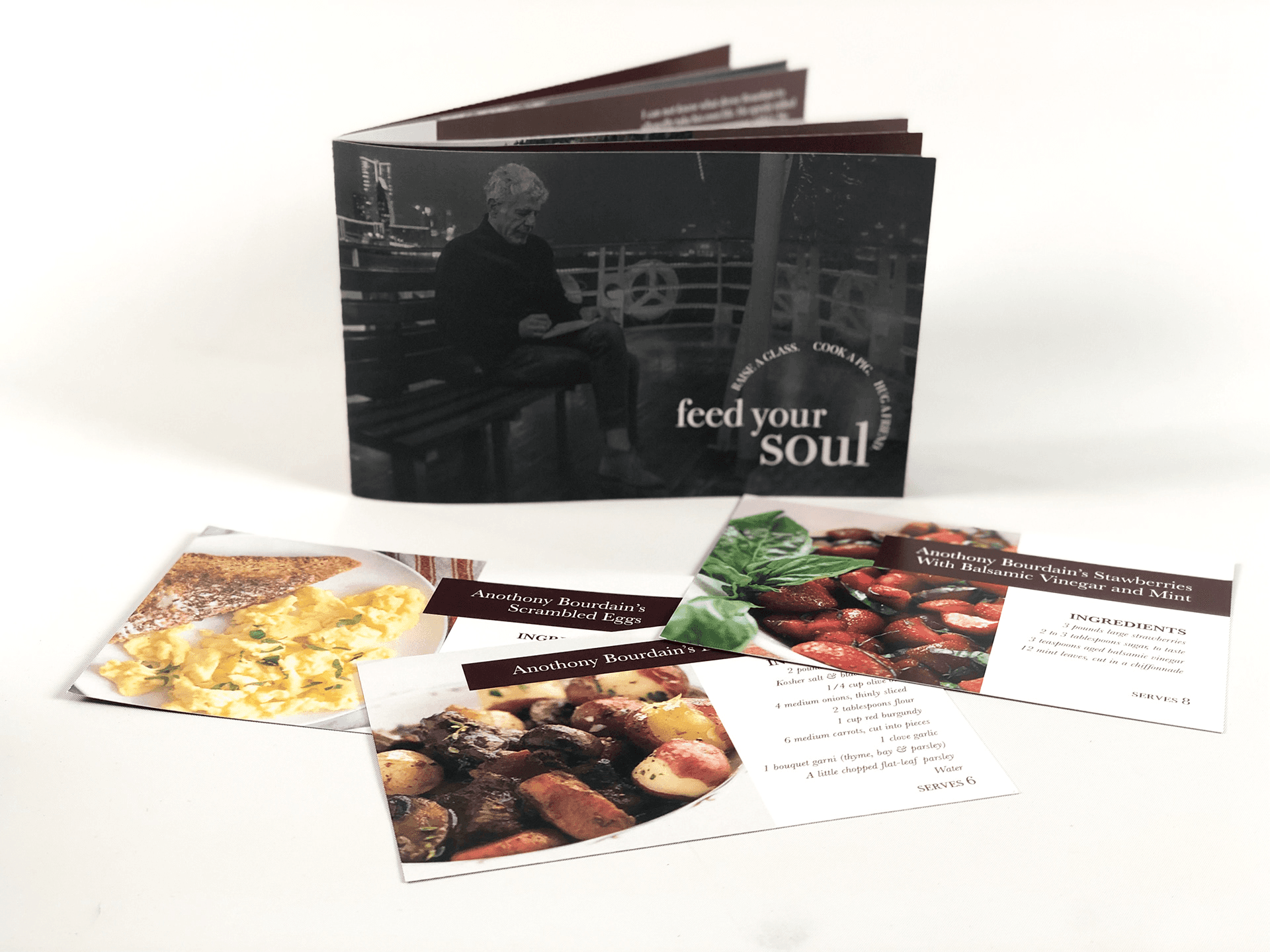 Feed Your Soul is an immersive museum exhibition concept that honors the life, voice, and impact of Anthony Bourdain. Developed as part of a graphic design studio course, the project included exhibition branding, advertisements, environmental graphics, a take-home pamphlet, and retail packaging for the gift shop. More than a celebration of his culinary legacy, this project explores Bourdain’s raw humanity and reminds visitors to savor life—and each other—deeply.